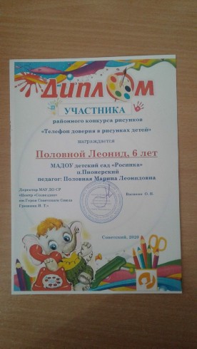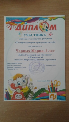 Участие районном конкурсе "Телефон доверия в рисунках детей"